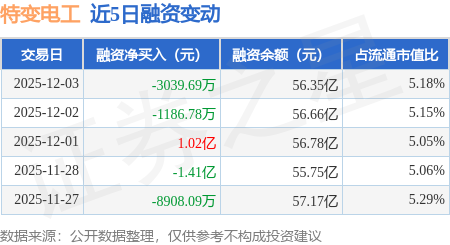 证券之星消息,12月3日,特变电工(600089)融资买入3.51亿元,融资偿还3.81亿元,融资净卖出3039.69万元,融资余额56.35亿元。