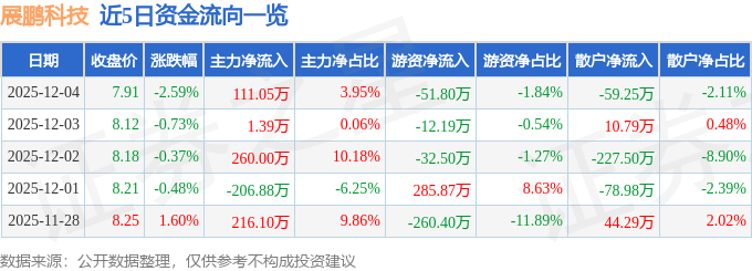 12月4日的资金流向数据方面,主力资金净流入111.05万元,占总成交额3.95%,游资资金净流出51.8万元,占总成交额1.84%,散户资金净流出59.25万元,占总成交额2.11%。