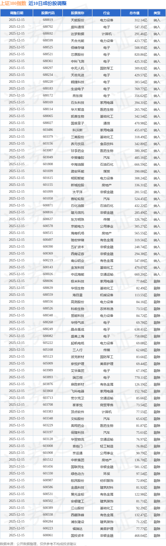 近10日内上证380(000009)指数成份股做了调整,新纳入了38只股票,剔除了38只股票。