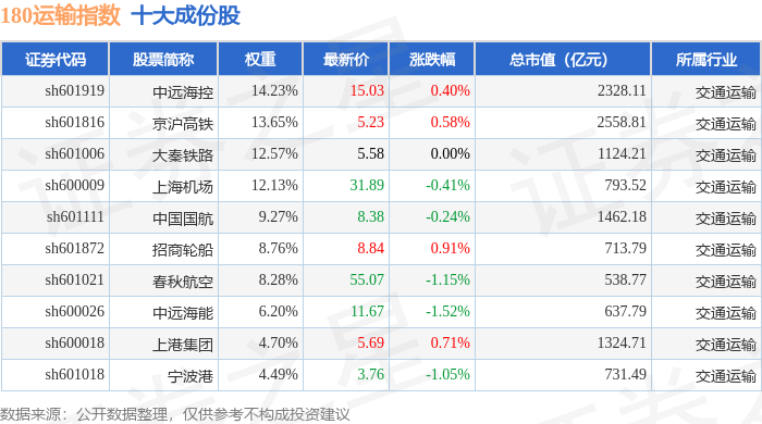 资金流向方面,180运输(000027)指数成份股当日主力资金净流出合计1.93亿元,游资资金净流入合计31.01万元,散户资金净流入合计1.93亿元。成份股资金流向详情见下表: