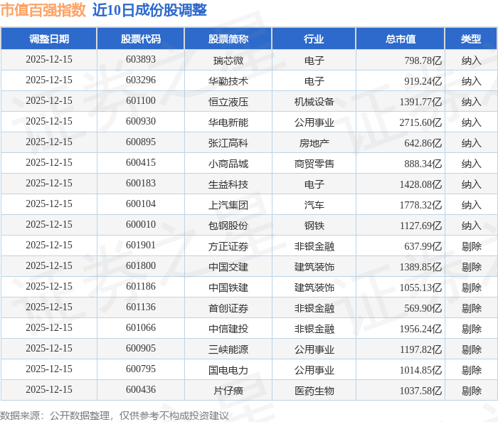 近10日内市值百强(000155)指数成份股做了调整,新纳入了9只股票,剔除了8只股票。