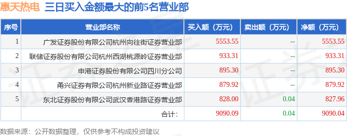 证券之星消息,沪深交易所2025年12月4日公布的交易公开信息显示,惠天热电(000692)因连续三个交易日内,涨幅偏离值累计达到20%的证券登上龙虎榜。此次是近5个交易日内第1次上榜。