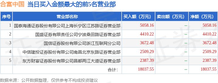 从龙虎榜公布的当日买卖数据来看,章盟主、宁波桑田路等知名游资榜上有名。(知名游资章盟主一般指国泰海通证券股份有限公司上海长宁区江苏路证券营业部席位、知名游资宁波桑田路一般指国盛证券有限责任公司宁波桑田路证券营业部席位,根据市场资料整理,仅供参考)