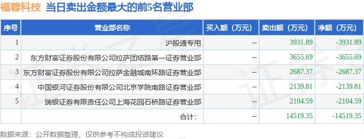 证券之星消息,沪深交易所2025年12月4日公布的交易公开信息显示,福蓉科技(603327)因有价格涨跌幅限制的日价格振幅达到15%的前五只证券登上龙虎榜。此次是近5个交易日内第3次上榜。