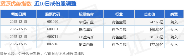 近10日内资源优势(399319)指数成份股做了调整,新纳入了4只股票。