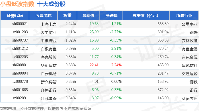 近10日内小盘低波(399408)指数成份股做了调整,新纳入了42只股票。