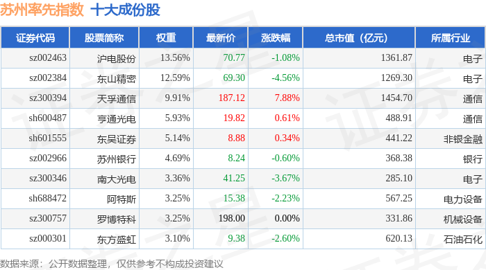 苏州率先(399410)指数十大成份股详情如下: