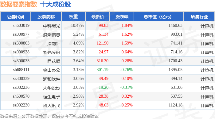 数据要素(399418)指数十大成份股详情如下: