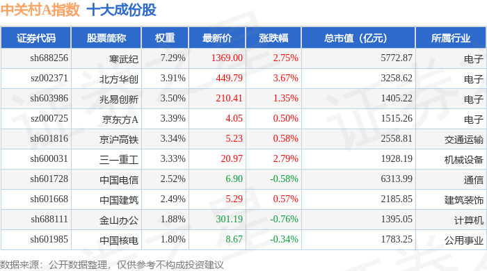 中关村A(399422)指数十大成份股详情如下: