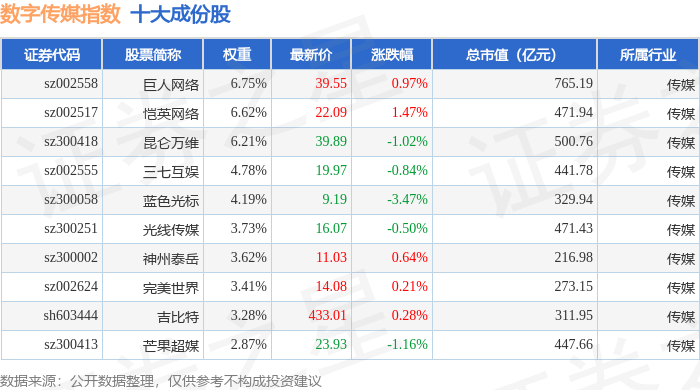 近10日内数字传媒(399434)指数成份股做了调整,新纳入了1只股票。