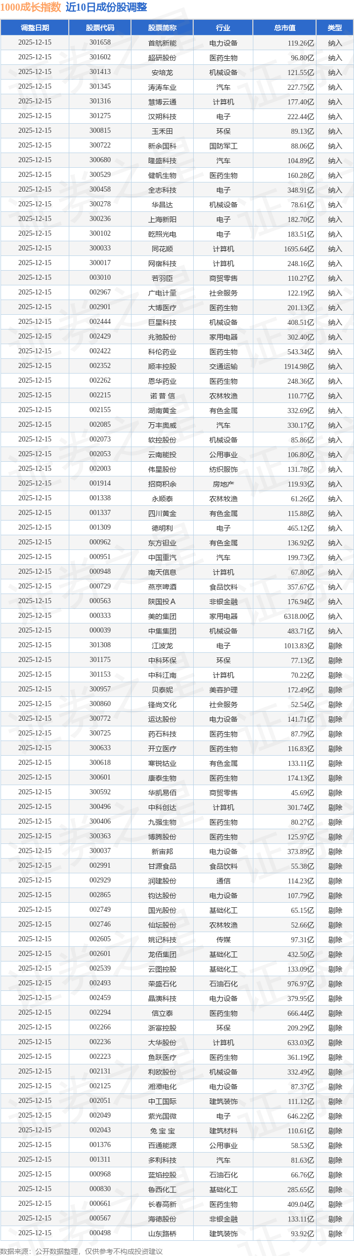 近10日内1000成长(399630)指数成份股做了调整,新纳入了41只股票,剔除了41只股票。