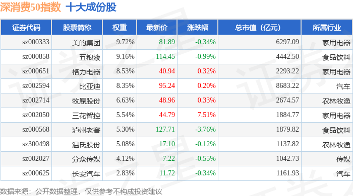 深消费50(399646)指数十大成份股详情如下: