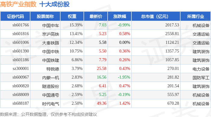 资金流向方面,高铁产业(399807)指数成份股当日主力资金净流出合计4.26亿元,游资资金净流入合计4103.18万元,散户资金净流入合计3.85亿元。成份股资金流向详情见下表: