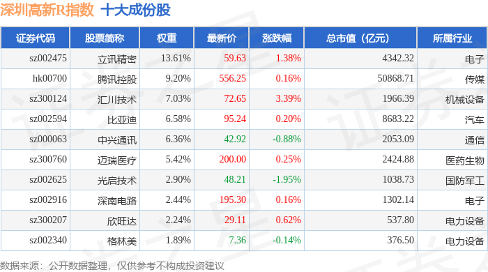 近10日内深圳高新R(480038)指数成份股做了调整,新纳入了1只股票。