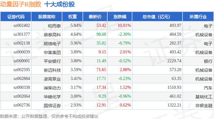 动量因子R(480057)指数十大成份股详情如下: