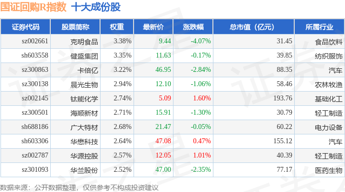 近10日内国证回购R(480063)指数成份股做了调整,新纳入了22只股票,剔除了10只股票。