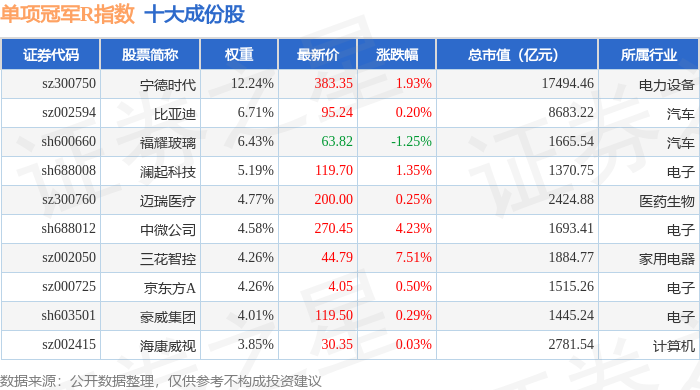 近10日内单项冠军R(480150)指数成份股做了调整,新纳入了5只股票。