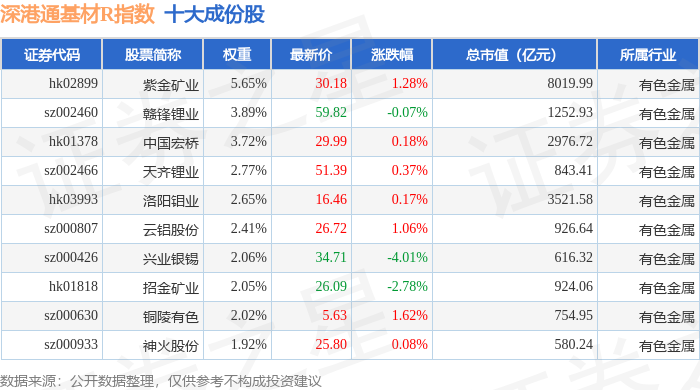 深港通基材R(483061)指数十大成份股详情如下:
