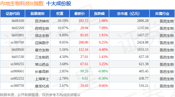 资金流向方面,内地生物科技R(483101)指数成份股当日主力资金净流出合计4.86亿元,游资资金净流入合计1.13亿元,散户资金净流入合计3.73亿元。成份股资金流向详情见下表: