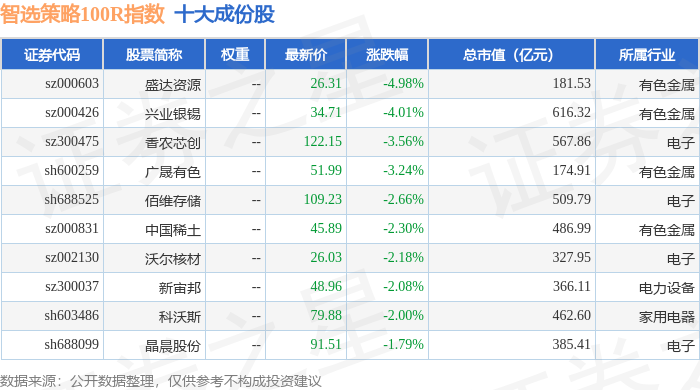 智选策略100R(489015)指数十大成份股详情如下: