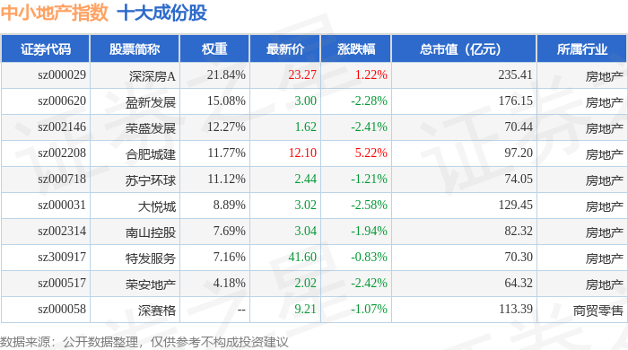 中小地产(971002)指数十大成份股详情如下: