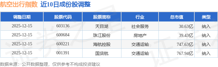 近10日内航空出行(980059)指数成份股做了调整,新纳入了4只股票。