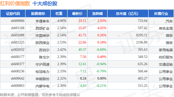 红利价值(980103)指数十大成份股详情如下: