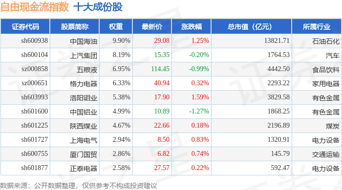 近10日内自由现金流(980092)指数成份股做了调整,新纳入了44只股票,剔除了15只股票。
