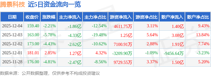 证券之星消息,截至2025年12月4日收盘,腾景科技(688195)报收于159.4元,下跌2.21%,换手率7.19%,成交量9.3万手,成交额14.84亿元。