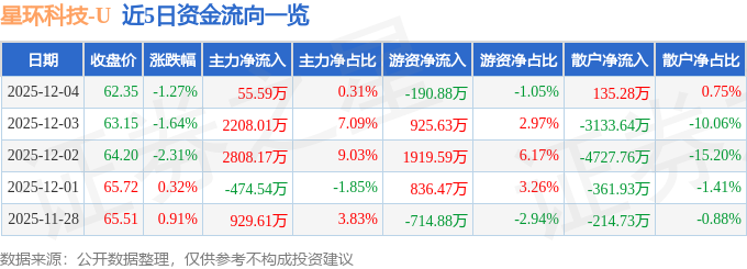 证券之星消息,截至2025年12月4日收盘,星环科技(688031)报收于62.35元,下跌1.27%,换手率3.08%,成交量2.9万手,成交额1.81亿元。