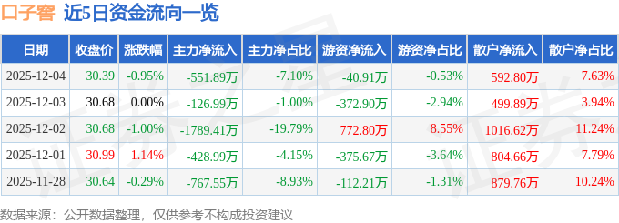 12月4日的资金流向数据方面,主力资金净流出551.89万元,占总成交额7.1%,游资资金净流出40.91万元,占总成交额0.53%,散户资金净流入592.8万元,占总成交额7.63%。