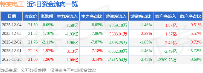 证券之星消息,截至2025年12月4日收盘,特变电工(600089)报收于21.5元,下跌0.09%,换手率1.81%,成交量91.71万手,成交额19.64亿元。