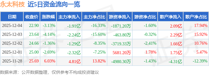 12月4日的资金流向数据方面,主力资金净流出1.91亿元,占总成交额16.33%,游资资金净流出1871.2万元,占总成交额1.6%,散户资金净流入2.09亿元,占总成交额17.94%。