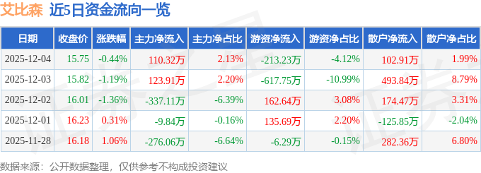 证券之星消息,截至2025年12月4日收盘,艾比森(300389)报收于15.75元,下跌0.44%,换手率1.41%,成交量3.3万手,成交额5178.17万元。