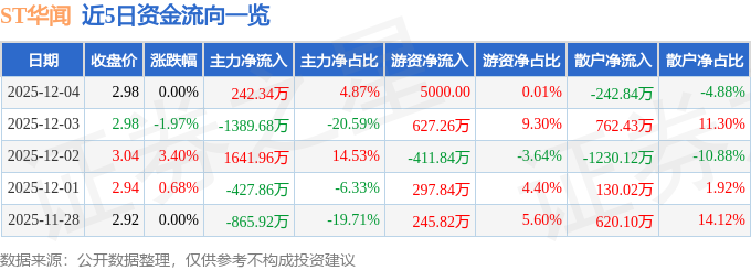 12月4日的资金流向数据方面,主力资金净流入242.34万元,占总成交额4.87%,游资资金净流入0.5万元,占总成交额0.01%,散户资金净流出242.84万元,占总成交额4.88%。