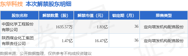证券之星消息,根据市场公开信息整理,东华科技(002140)于12月5日将有1.64亿股限售股份解禁,为公司定向增发机构配售股份,占公司总股本23.1%。(本次数据根据历史公告整理得出,实际情况以上市公司最新公告为准)最近一年内,该股累计解禁220.12万股,占总股本的0.31%。本次解禁后,公司还有105.25万股限售股份,占总股本0.15%。具体如下图所示: