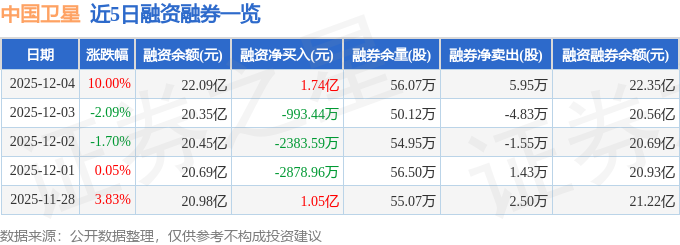 中国卫星融资融券信息显示,融资方面,当日融资买入6.54亿元,融资偿还4.81亿元,融资净买入1.74亿元,净买入额两市排名第5。融券方面,融券卖出8.39万股,融券偿还2.44万股,融券余量56.07万股,融券余额2577.71万元。融资融券余额22.35亿元。