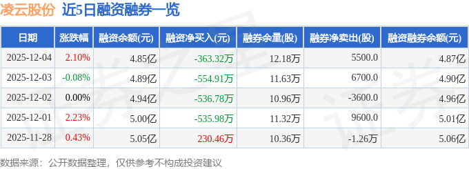 凌云股份融资融券信息显示,融资方面,当日融资买入1777.4万元,融资偿还2140.72万元,融资净偿还363.32万元。融券方面,融券卖出6200.0股,融券偿还700.0股,融券余量12.18万股,融券余额147.9万元。融资融券余额4.87亿元。