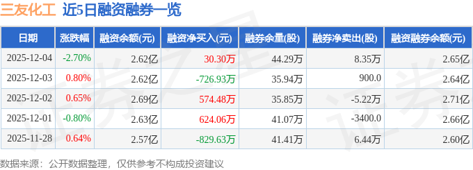 证券之星消息,截至2025年12月4日收盘,三友化工(600409)报收于6.12元,下跌2.7%,换手率1.5%,成交量31.06万手,成交额1.91亿元。