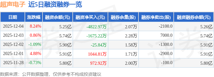 证券之星消息,截至2025年12月4日收盘,超声电子(000823)报收于13.93元,上涨8.24%,换手率13.1%,成交量70.36万手,成交额9.55亿元。