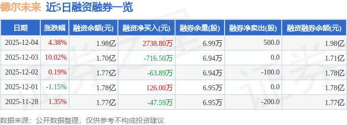 证券之星消息,截至2025年12月4日收盘,德尔未来(002631)报收于5.96元,上涨4.38%,换手率13.4%,成交量106.33万手,成交额6.28亿元。