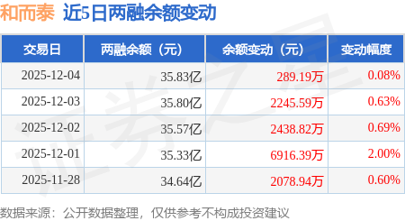 证券之星消息,12月4日,和而泰(002402)融资买入7.25亿元,融资偿还7.21亿元,融资净买入332.31万元,融资余额35.71亿元,近3个交易日已连续净买入累计5028.33万元,近20个交易日中有12个交易日出现融资净买入。