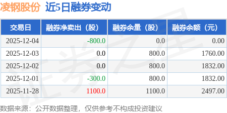 证券之星消息,12月4日,凌钢股份(600231)融资买入428.53万元,融资偿还174.0万元,融资净买入254.53万元,融资余额1.05亿元,近3个交易日已连续净买入累计293.09万元。