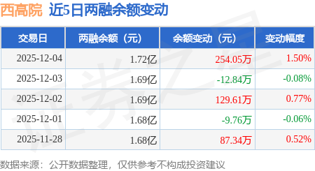 证券之星消息,12月4日,西高院(688334)融资买入452.12万元,融资偿还198.07万元,融资净买入254.05万元,融资余额1.72亿元,近20个交易日中有14个交易日出现融资净买入。
