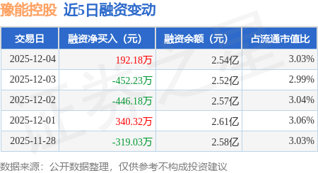 证券之星消息,12月4日,豫能控股(001896)融资买入623.59万元,融资偿还431.42万元,融资净买入192.18万元,融资余额2.54亿元。