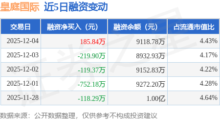 证券之星消息,12月4日,皇庭国际(000056)融资买入438.55万元,融资偿还252.71万元,融资净买入185.84万元,融资余额9118.78万元。