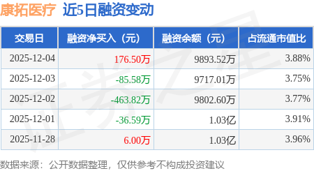 证券之星消息,12月4日,康拓医疗(688314)融资买入294.18万元,融资偿还117.68万元,融资净买入176.5万元,融资余额9893.52万元。