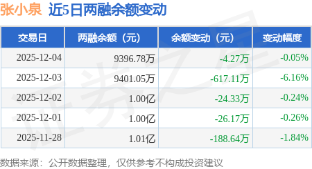 证券之星消息,12月4日,张小泉(301055)融资买入140.99万元,融资偿还145.26万元,融资净卖出4.27万元,融资余额9396.78万元。