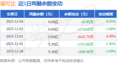 证券之星消息,12月4日,瑞可达(688800)融资买入4558.89万元,融资偿还4598.85万元,融资净卖出39.96万元,融资余额9.67亿元。