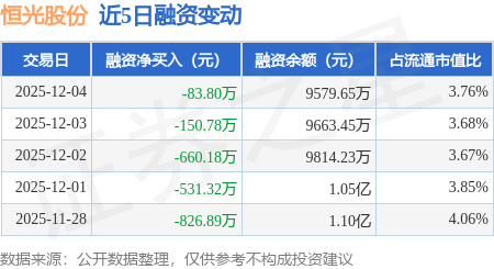 证券之星消息,12月4日,恒光股份(301118)融资买入901.54万元,融资偿还985.33万元,融资净卖出83.8万元,融资余额9579.65万元。